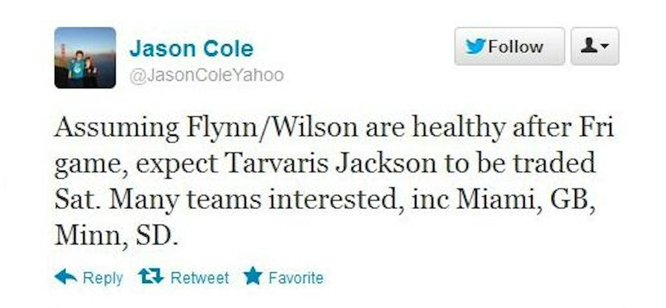 Russell Wilson might be in the process of beating out Matt Flynn for the starting job in Seattle (an ex-Badger beating out an ex-Packer, which is neat). He is going to start the all-important third preseason game. But the bigger news is they are both rendering ex-Viking Tarvaris Jackson as expendable. And that is scary because: Per Yahoo's Jason Cole: