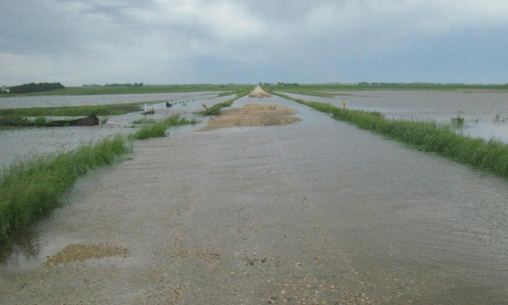 A flooded road and wildlife management area in Murray County in southwestern Minnesota. DNR photo.