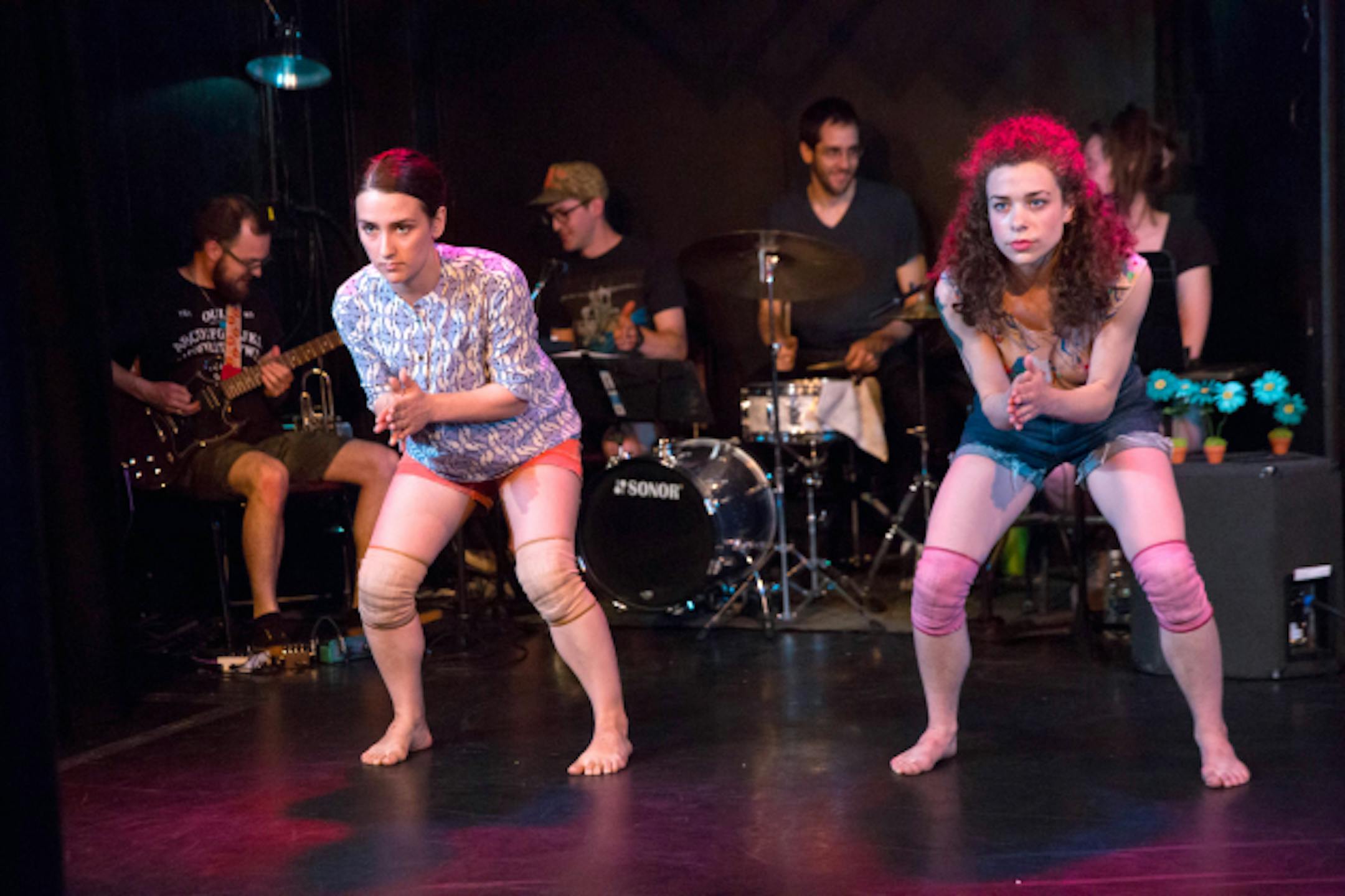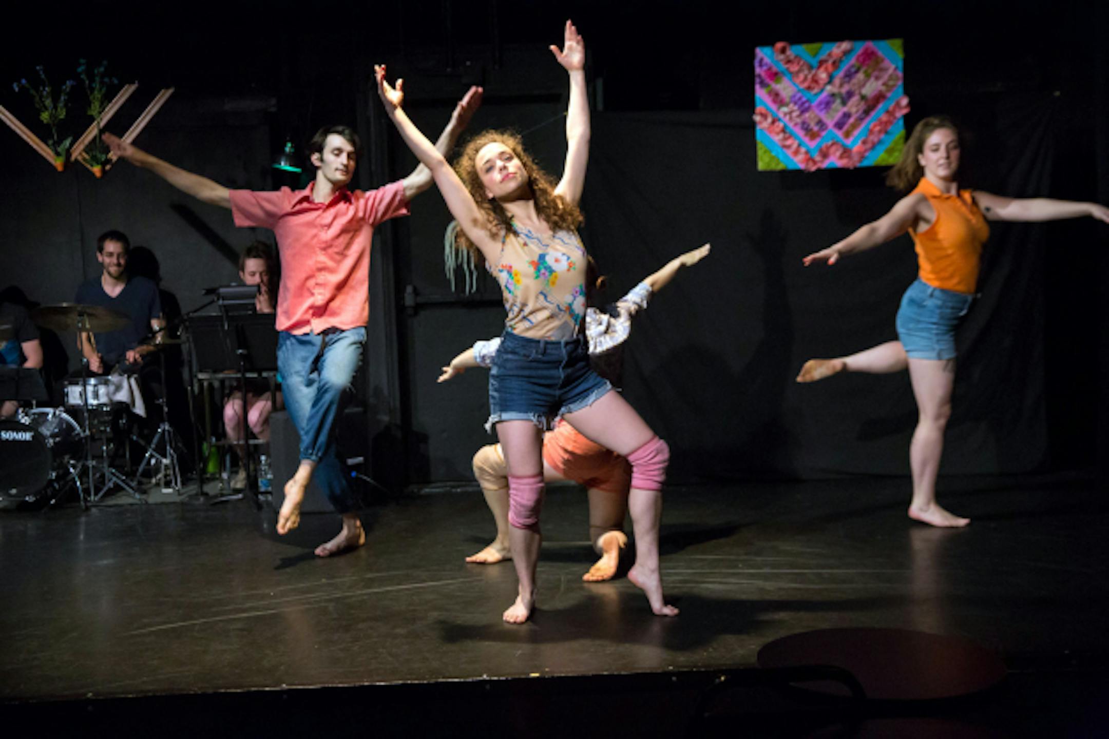 Members of Dancebums and the musical group 6 Families performed "Wow," a Mother's Day-themed show, at Bryant-Lake Bowl. (photo by Bill Cameron)