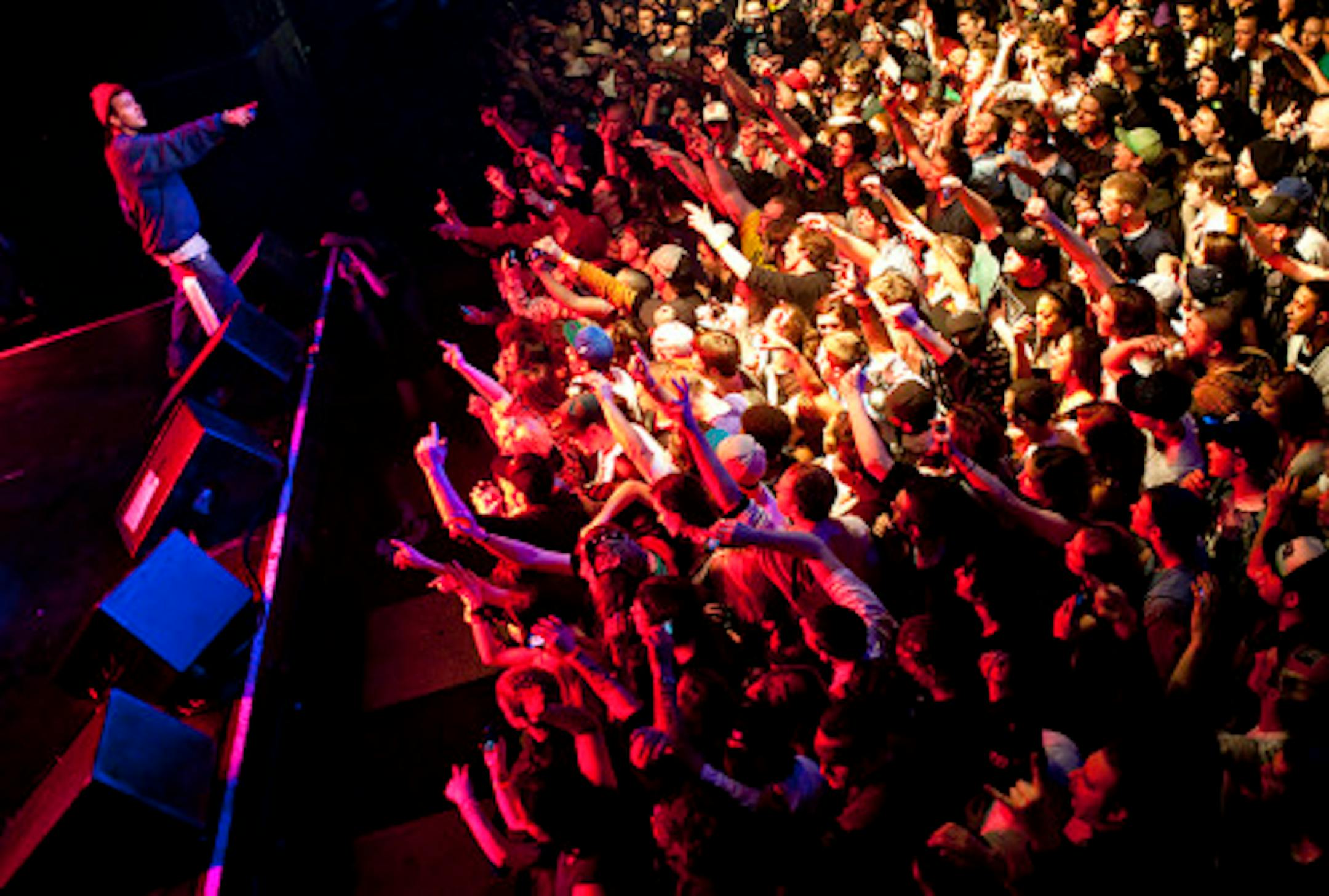 Once on the mic, Yelawolf powered through songs as if he was pushing the wheel on his storied box Chevy. His beats thundered through the club, a mix of classic 808 southern bass and electric guitar samples. He performed the majority of his latest album, "Trunk Muzik 0-60" (which is more of an official mixtape). On the record, his tales of trailer-park meth wars in the Alabama backwoods come off as eerie, sometimes sinister drama pieces. But on stage, his vibe was pure ecstasy – his supreme rhyme skills often throwing the crowd into a frenzy. The audience sang along as best they could. Obviously, keeping up with Yelawolf's triple-time rhymes isn't easy. He can rap as fast as Twista and he's a gifted hook writer too, bringing melodic sing-song choruses to the roughest of gangsta-rap fantasies.
